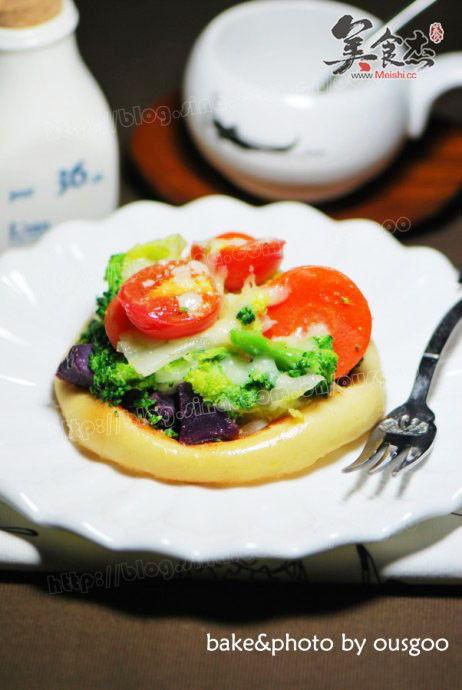 4. 预热烤箱至200℃,将饼底放入烤箱烤至表面微黄,大约5分钟。